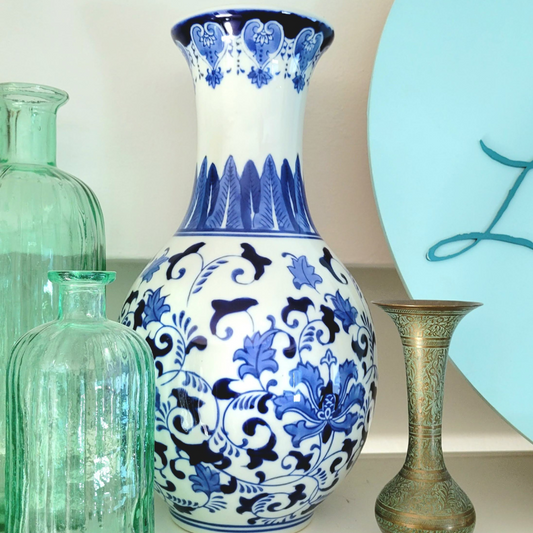 Blue & White Chinoiserie Handpainted Ginger Jar - Floral Motif