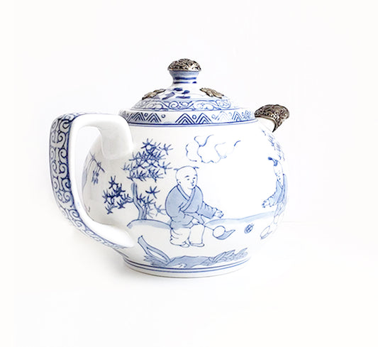 Blue & White Chinoiserie Handpainted Tea Pot - Large