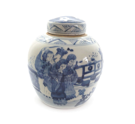 Blue & White Chinoiserie Handpainted Ginger Jar - Dieties Motif