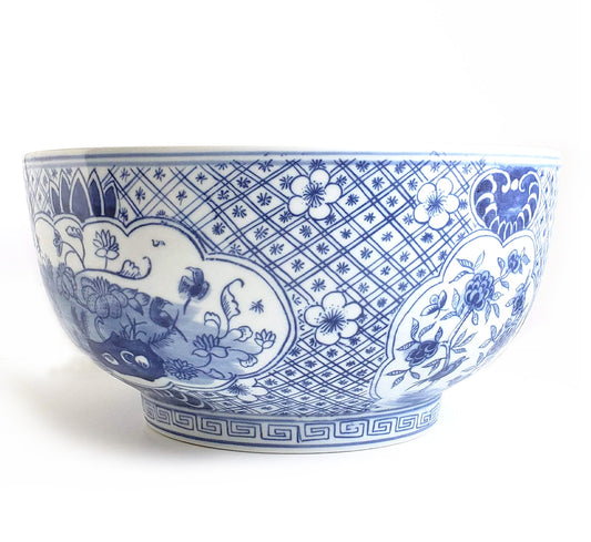 Blue & White Chinoiserie Handpainted Large Floral Bowl