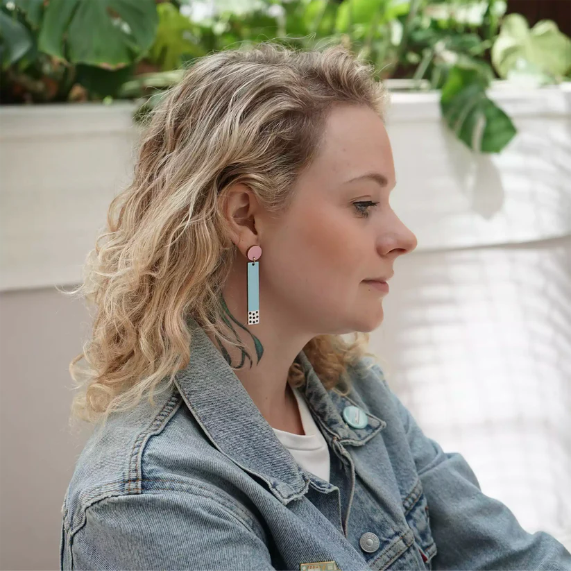 Vibrant, fun 90s rectangle dangle earrings make you stand out in the crowd.