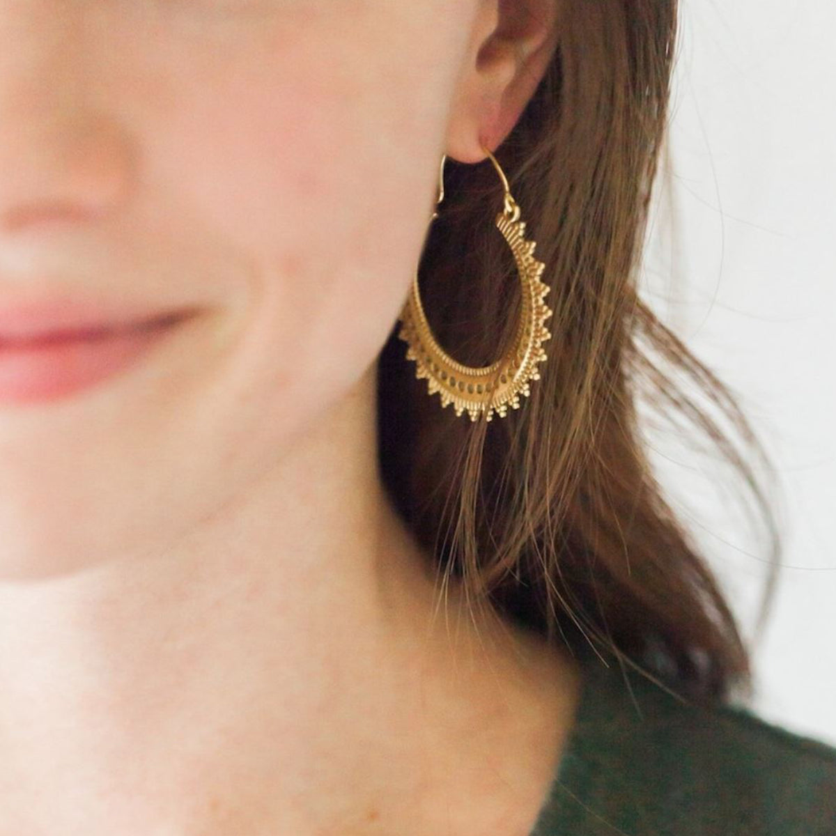 Inspired by the enchanting moon, as well as the unmistakable rich artistic heritage of Jaipur, these Full Moon earrings include classic Indian elements, with the curve of the moon. Full Moon earrings blend perfectly with any look, and can be effortlessly dressed up or down for any occasion.