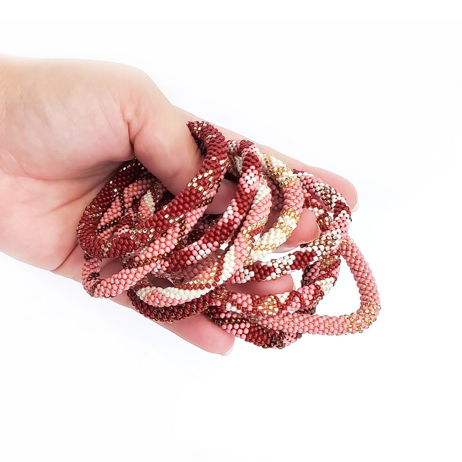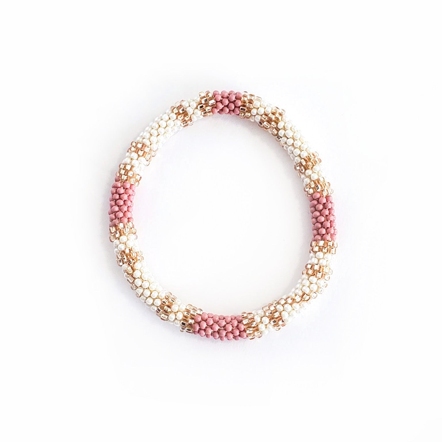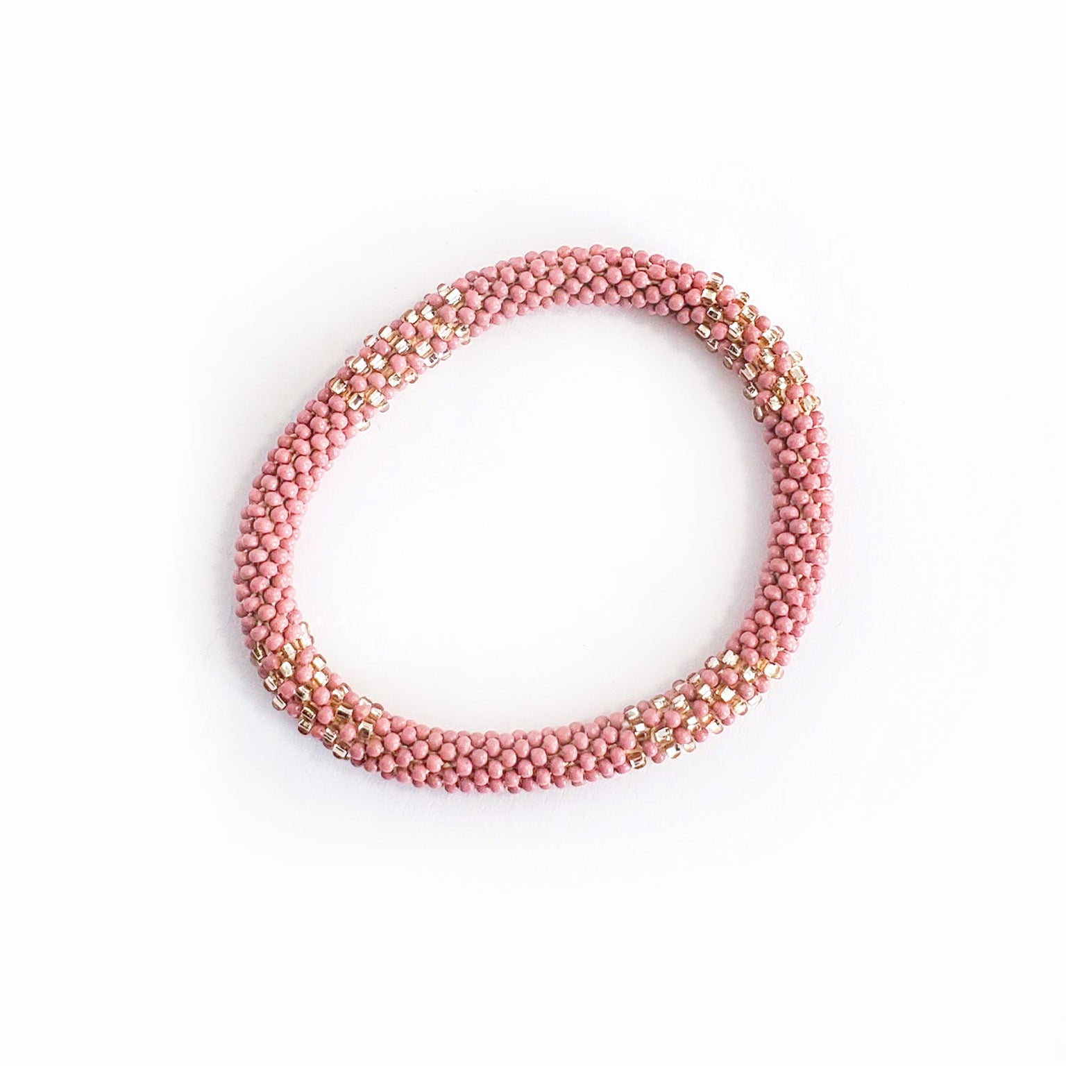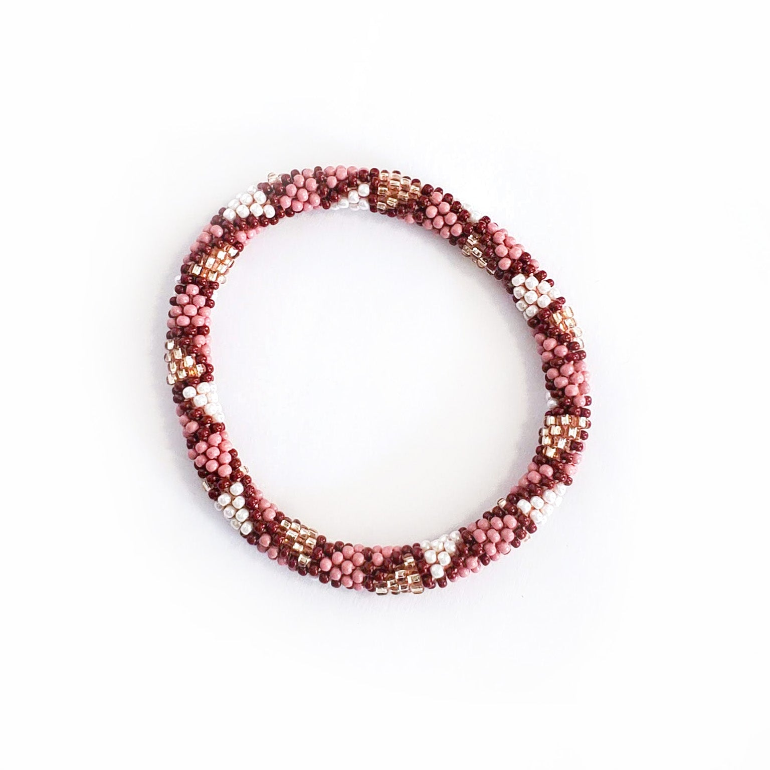 Perfectly colored for a fall day, with soft millennial rose pink, gold, rich bronze, and deep wine red shades, the lovely Desert Rose set is an assortment of stack-able, mix-and-match roll-on bracelets for easy every day wear. Plus, they're ethical and 100% fair trade!
