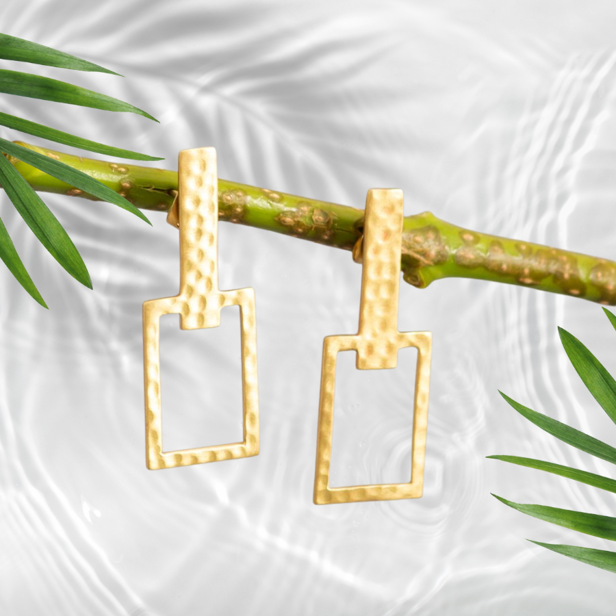 Lightweight and breezy, these beautiful rectangle-cut earrings a touch of modern cultural elegance to your collection.