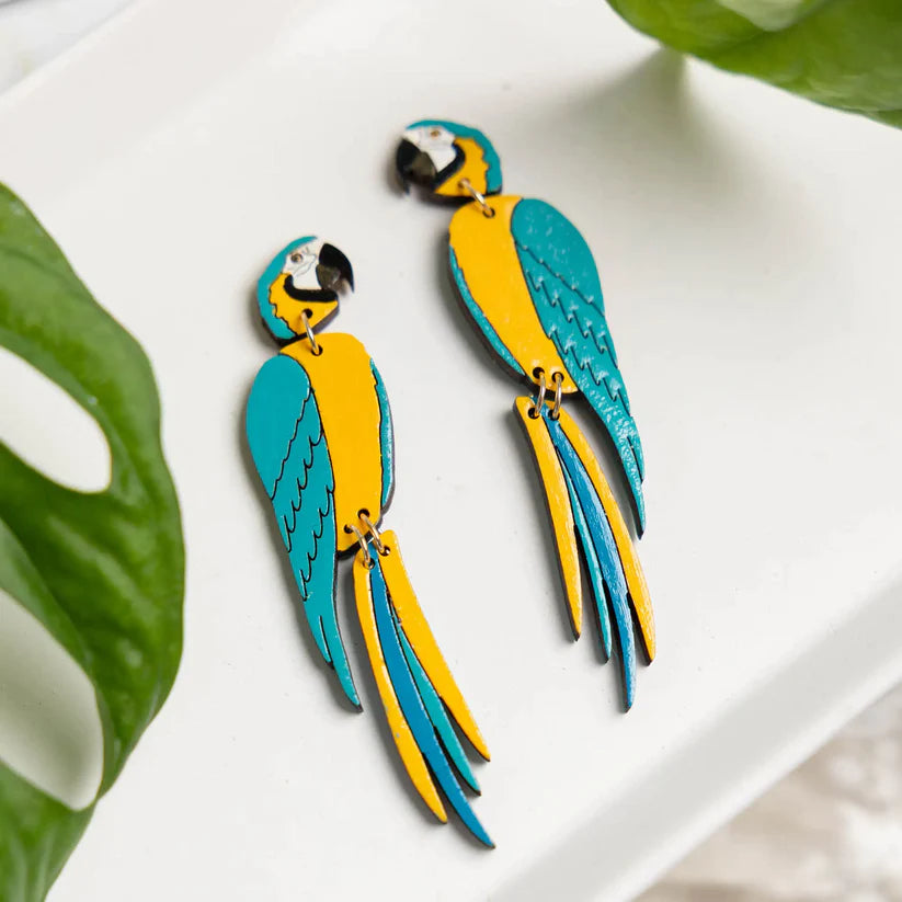 Blue & Gold Macaw Parrot Earrings