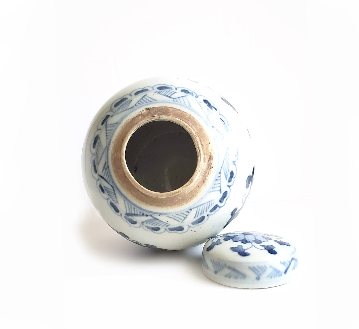 Blue & White Chinoiserie Handpainted Ginger Jar - Floral Motif