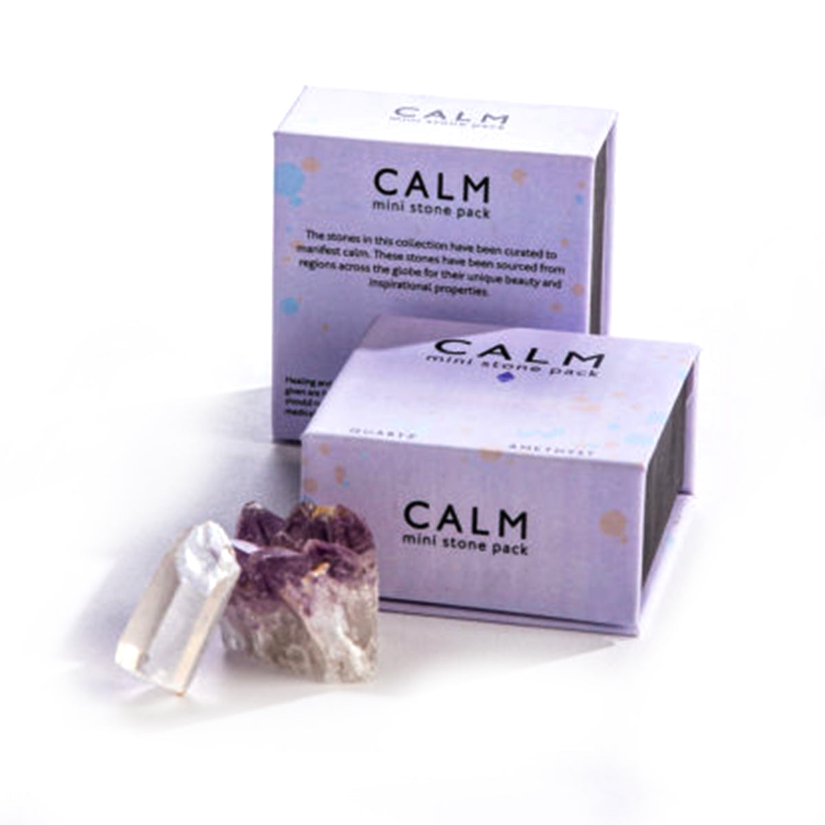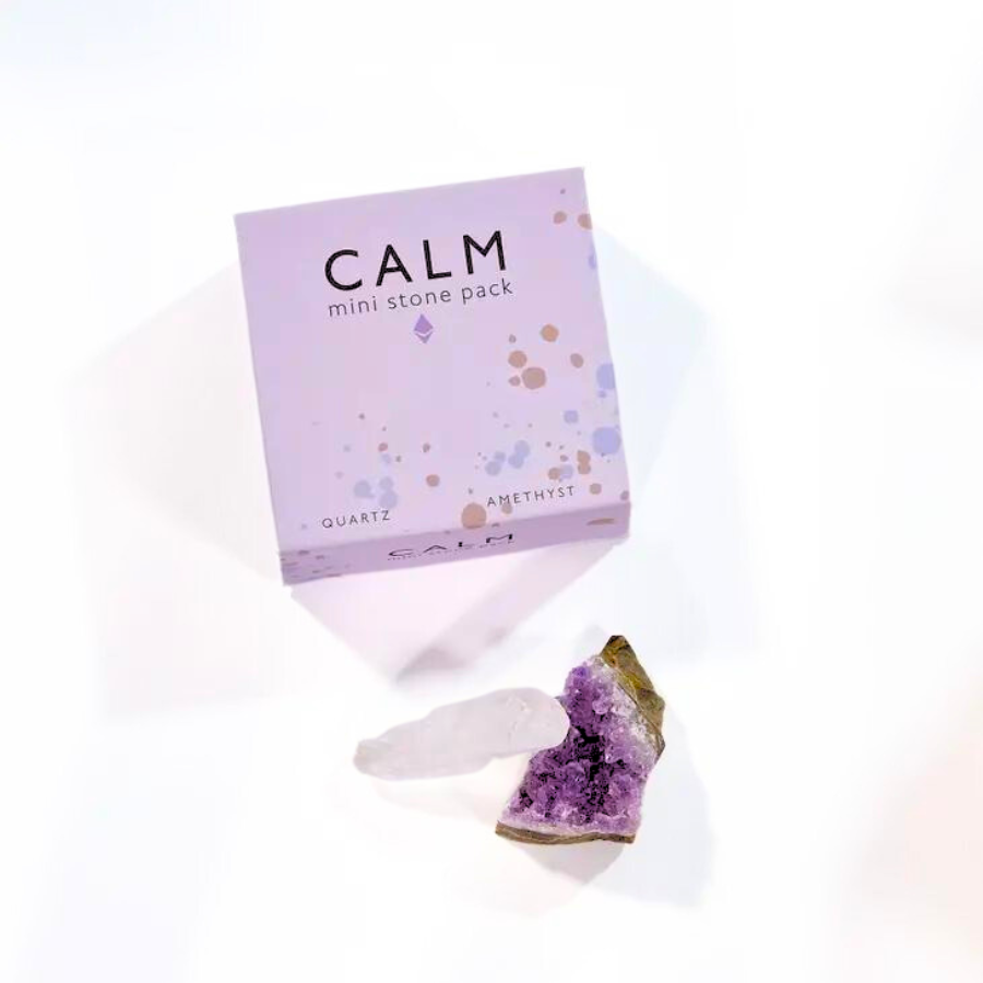 The Calm Mini Stone Pack contains two small stones that have been hand selected in order to provide both tranquil and calming energy: clear quartz and amethyst. Clear quartz is a master healer and transmitter of positive energy, so when it is paired with the relaxing and clarifying energy of amethyst, it can provide an extra dose of serenity.