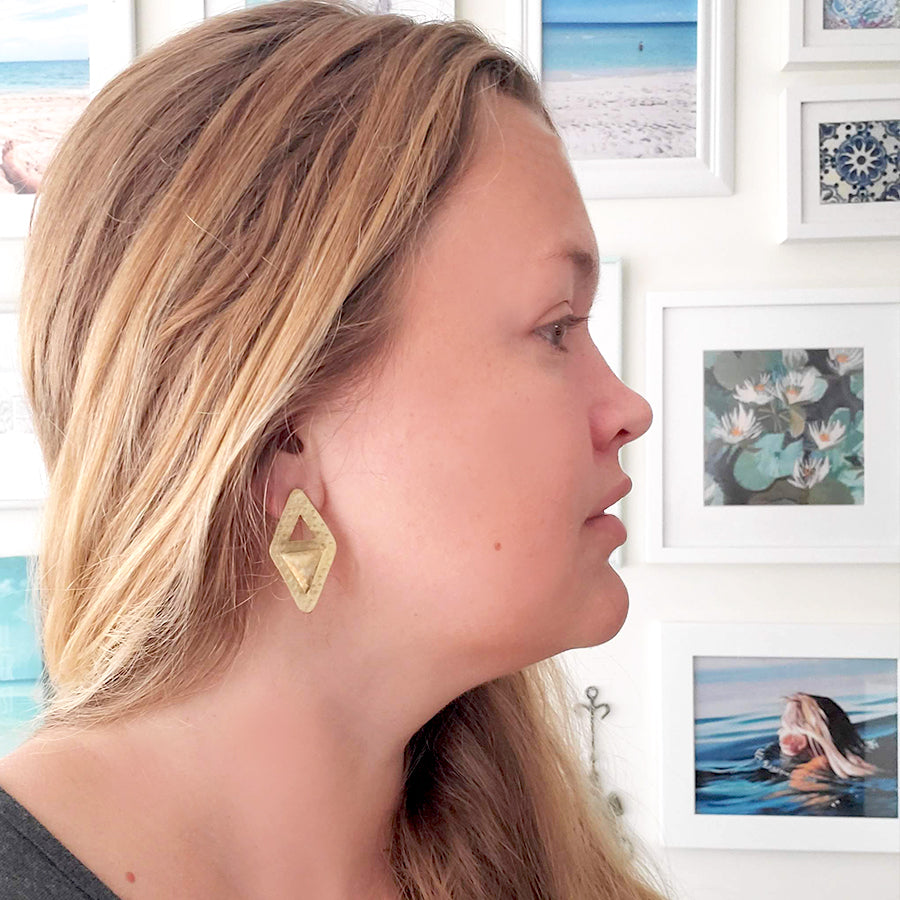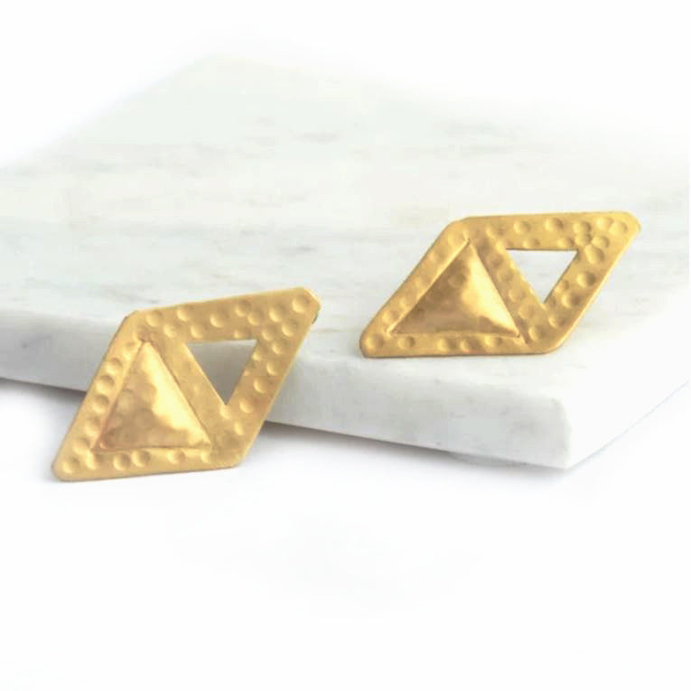 A subtle hint of tribal elegance never goes awry, and these studs deliver that tribal glam! An XL size, a hammered brass finish and subtle, but oh-so-cool geometric design give these Golden Dart Studs a big WOW factor. And even better, these statement studs are ethical, fair trade, and woman-made!