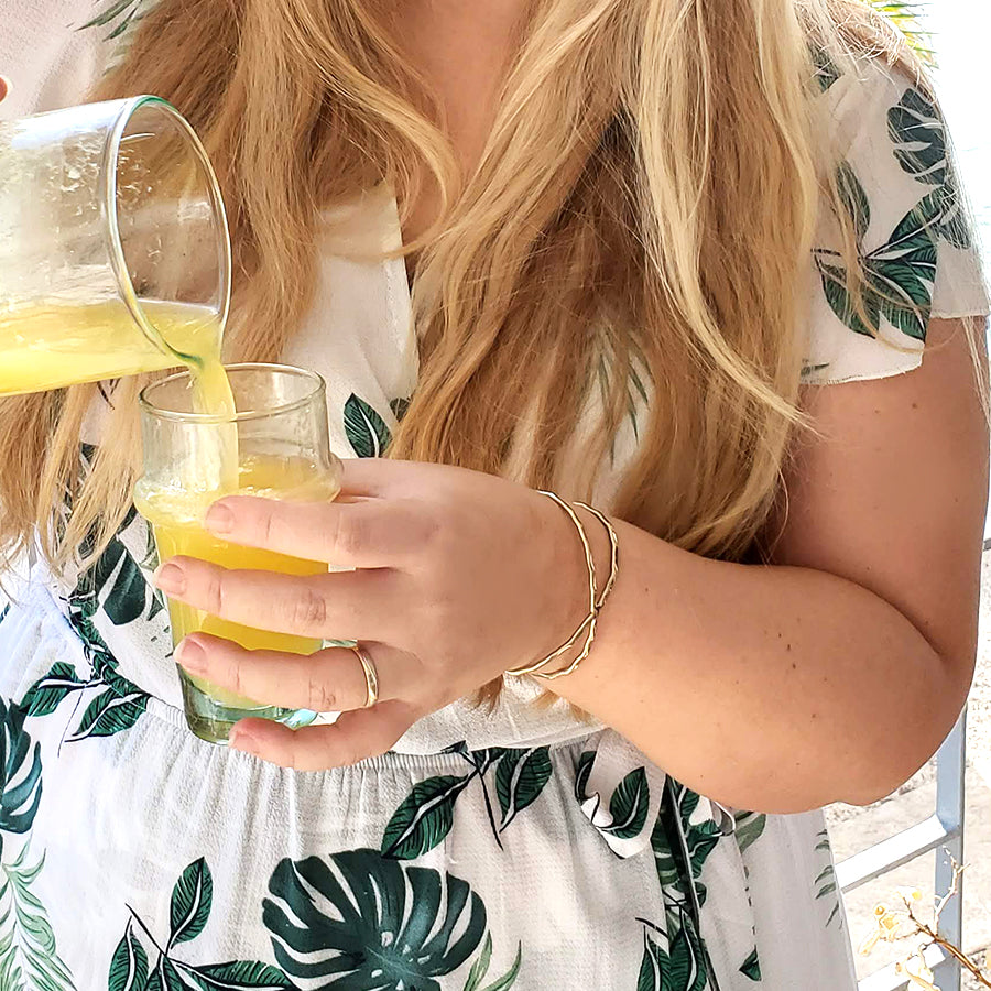 As part of the India Collection by Fair Anita, this hammered bracelet supports artisan women, and survivors. Fair Anita products are ethically-made, affordable, and cute, and they've partnered with 8,000 women in 16 countries who are utilizing this resource of economic self-sufficiency to create real change around the globe. Their mission is to create a world where women feel safe, valued, and respected no matter their geography.