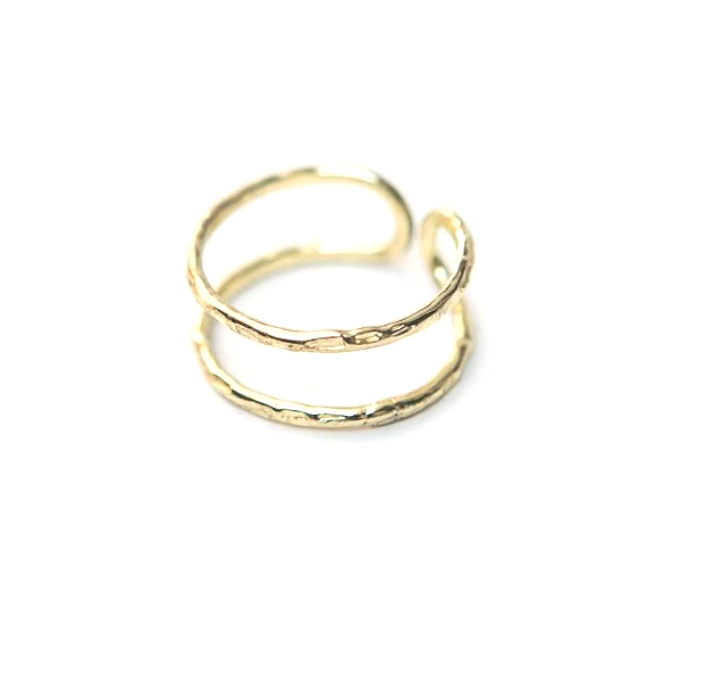 The Illusion Ring by Fair Anita is aptly named, as it can be worn two different ways, to "keep things fresh". Depending on your mood, you can wear this dainty ring with the cute rounded adjustable ends up, or wear the illusion of two rings stacked together.