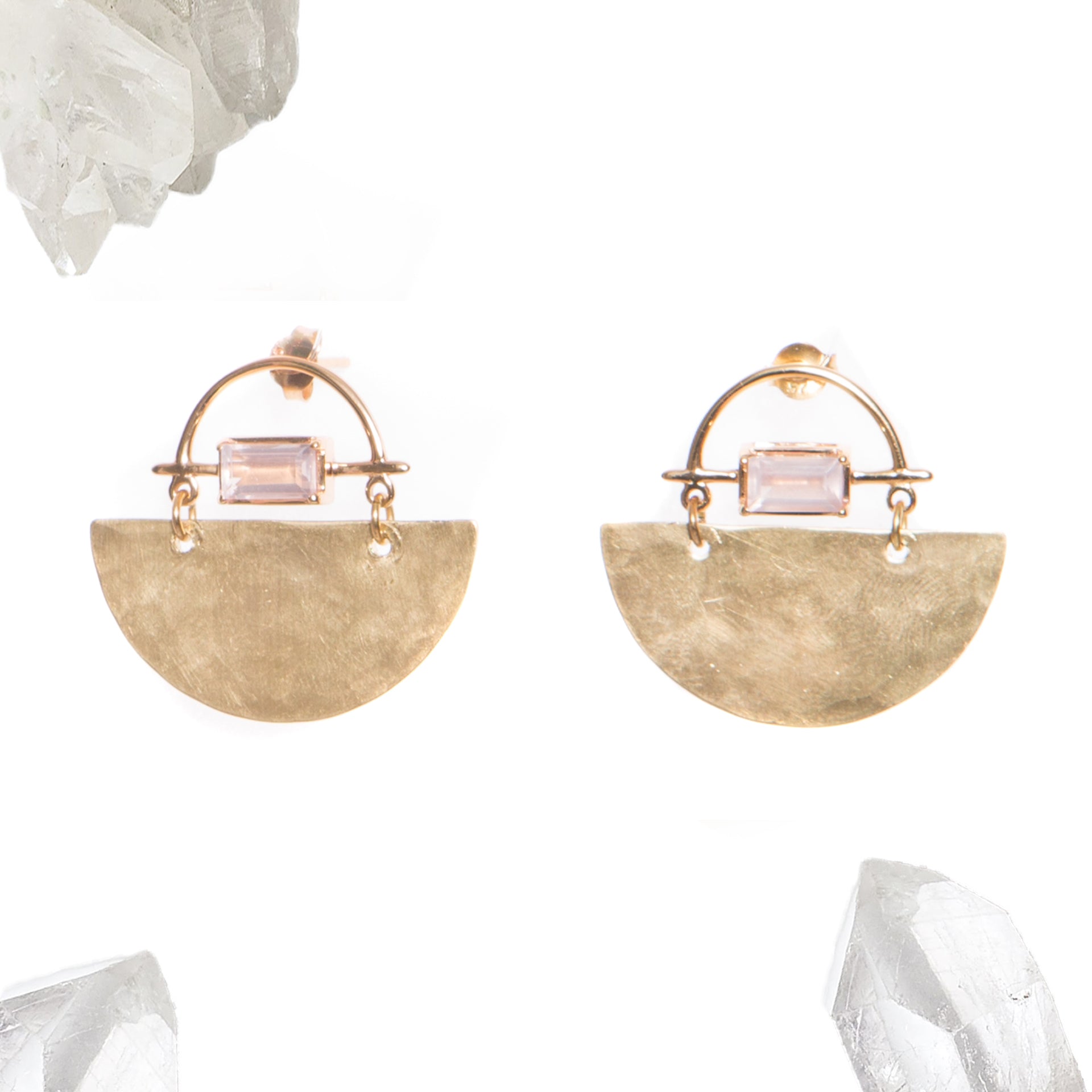 For a more modern, but still edgy style, try these stunning handmade Meridian shield earrings in hand-cut gemstones - Citrine, Prehnite, or Rose Quartz - set in 14K gold vermeil with hand-hammered recycled brass.
