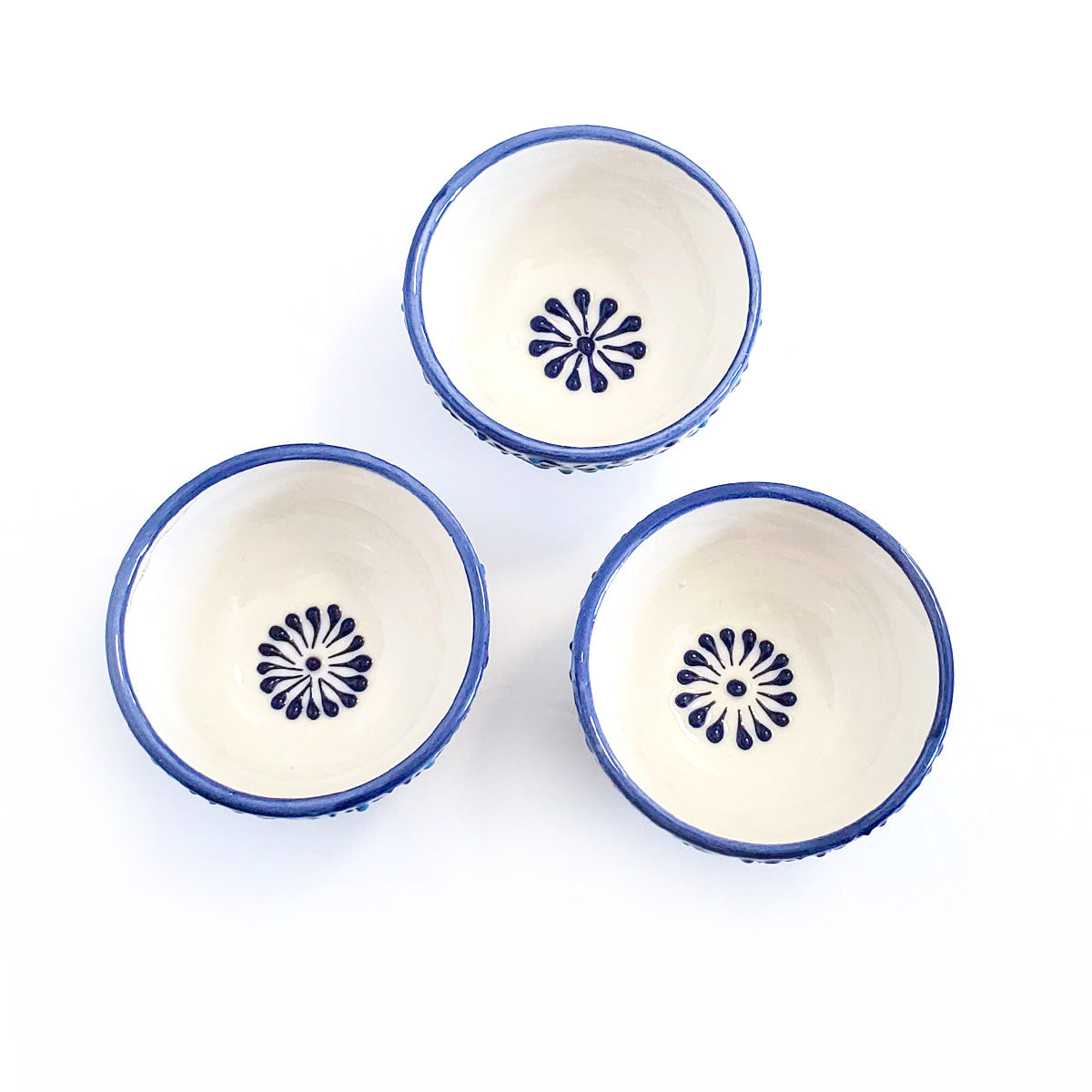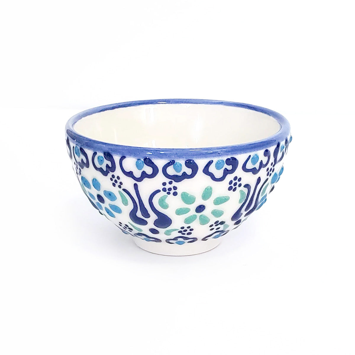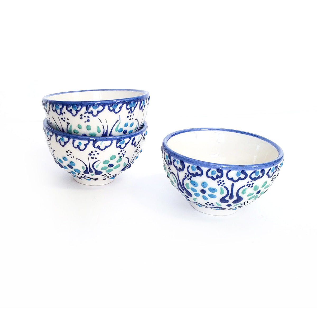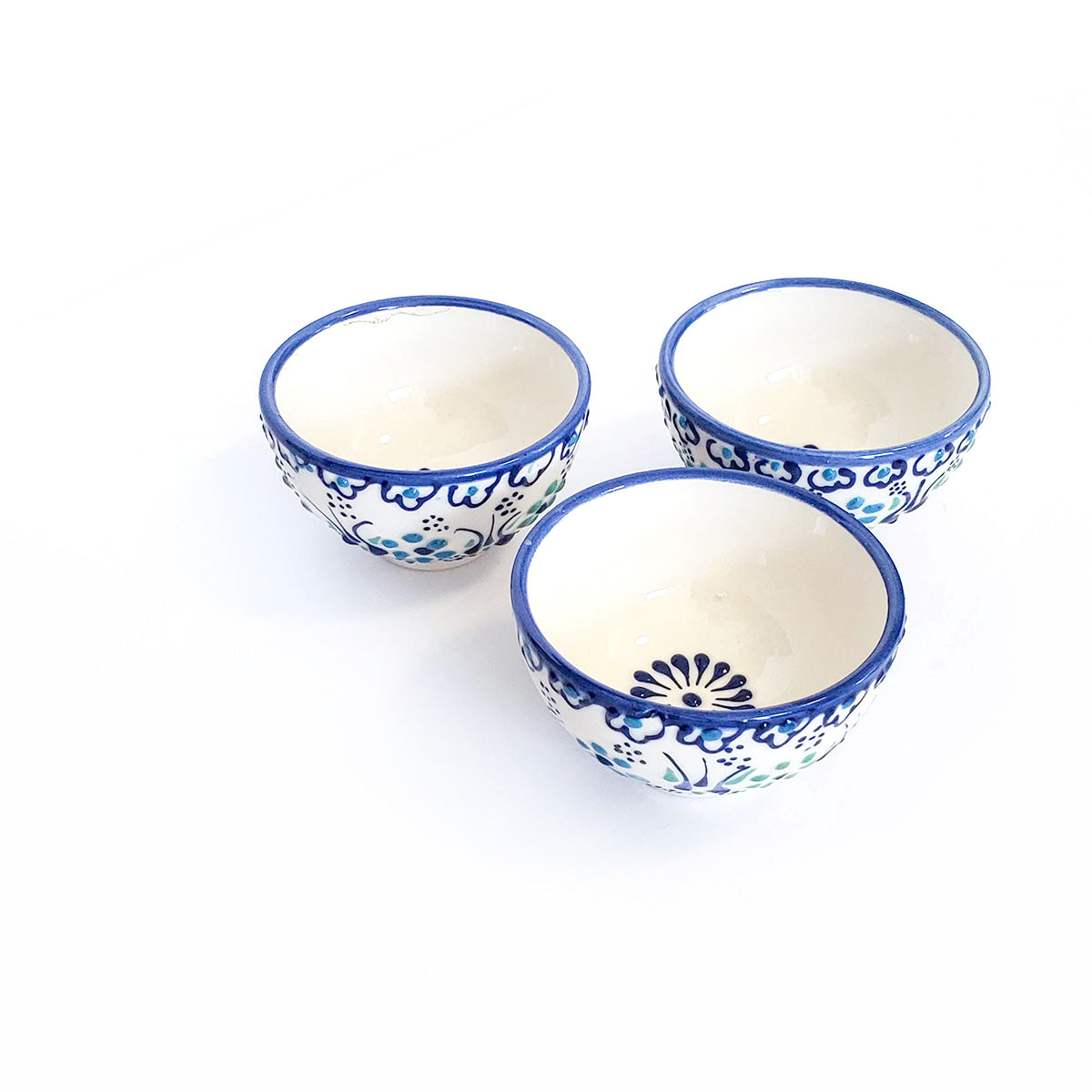 Handpainted Turkish artisan blue aqua and white mini bowls.