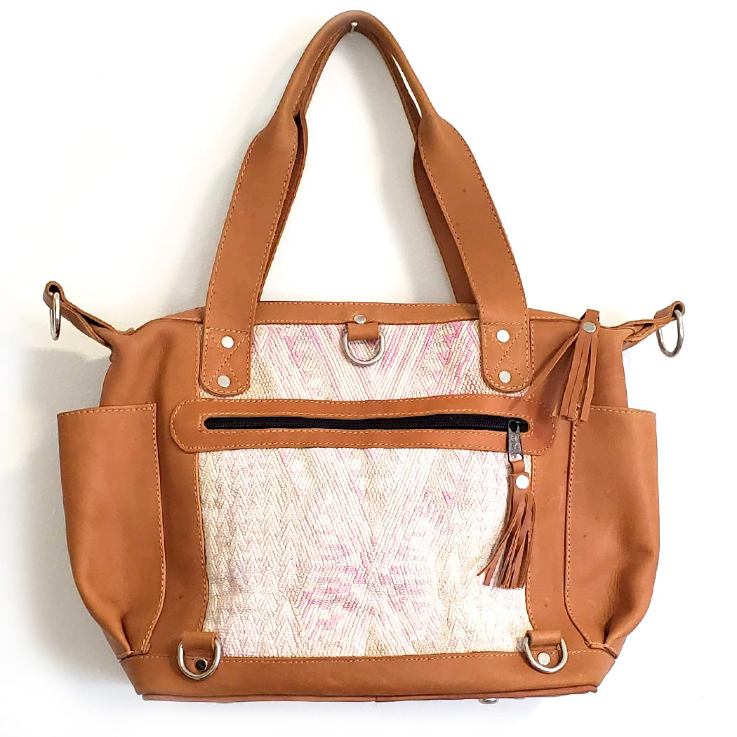 Made from textile treasures from Maya villages all around Guatemala, a country world famous for its intricate textiles and hand-embroidery, this bag is handmade magic. Its bold textile print comes from re-purposed traditional hand-woven huipiles, the indigenous clothes of local Maya women. Instead of throwing out these beautiful clothes, our artisan supplier gives them a second life as a one-of-a-kind hand bag!