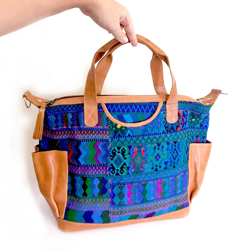 Made from textile treasures from Maya villages all around Guatemala, a country world famous for its intricate textiles and hand-embroidery, this bag is handmade magic. Its bold textile print comes from re-purposed traditional hand-woven huipiles, the indigenous clothes of local Maya women. Instead of throwing out these beautiful clothes, our artisan supplier gives them a second life as a one-of-a-kind hand bag!