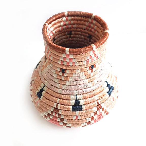 Made only in an ethical, fair trade environment. Handwoven by a cooperative of women located in Rwanda, this one of kind piece takes weeks to complete.