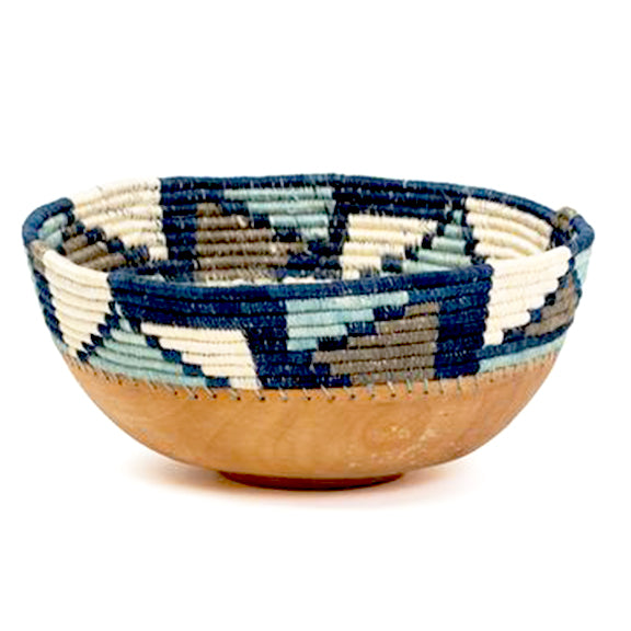 Intricately crafted with timeless tradition, this wood bowl is hand carved and sourced from an artisan in Rwanda who used local wood, sisal and sweet grass to create this decorative and traditional bowl.
