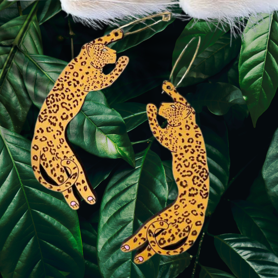 🌴 Embrace the call of the wild with "Leaping Leopard" Birchwood Earrings. These beauties are handcrafted in the USA from eco-friendly laser-cut birchwood and hand-painted to perfection. Filled with jungle inspiration, these vibrant earrings embody the untamed spirit of a graceful leopard mid-leap.