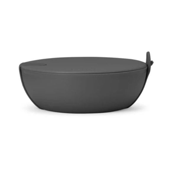 The Porter Travel Bowl is a durable plastic lunch bowl with a protective nonslip exterior, rigid plastic lid and snap-tight silicone strap.