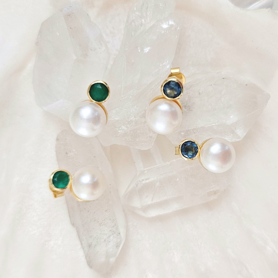 Just like Rory from GG, these dainty freshwater pearl studs pack a lot of personality! Sophisticated, emotionally intelligent and still professional. As an everyday pair, these earrings are a wardrobe staple. Our founder wears hers frequently as they are timeless and go with everything. Pearls have had a long reign as a classic, if traditional gem, but these have a modern flair with a colorful gemstone top.