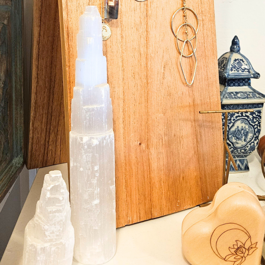 Selenite is an amazing crystal that channels the same feminine energy as it's namesake, Selene, the Moon. Selenite is a powerful, high-vibration crystal that is used to increase clarity of mind, and cleanse negative energy.