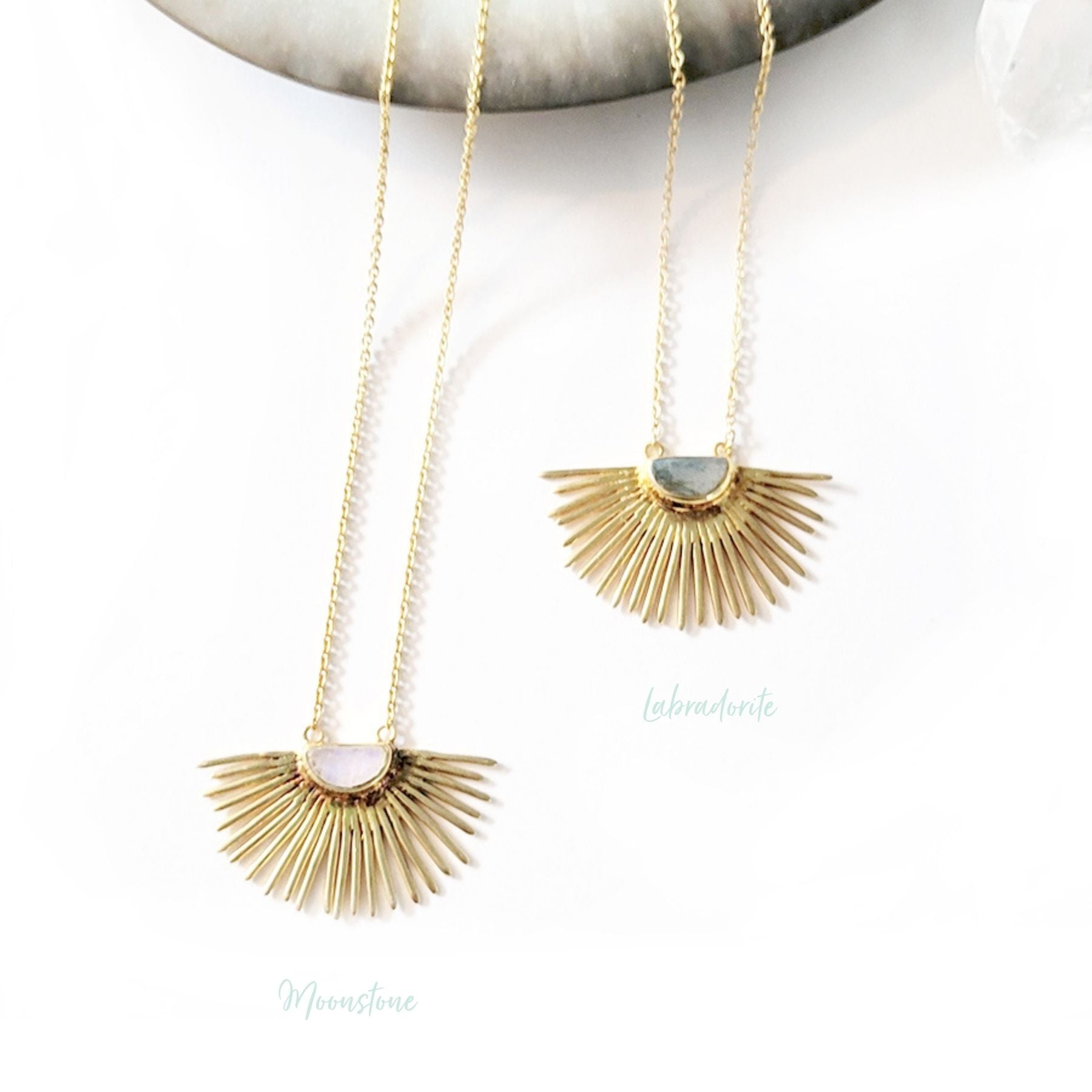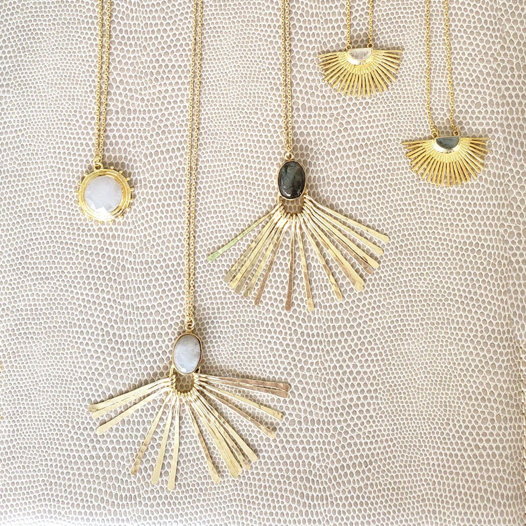 Delicate rays of golden sunshine suspended from a delicate gold tone chain.