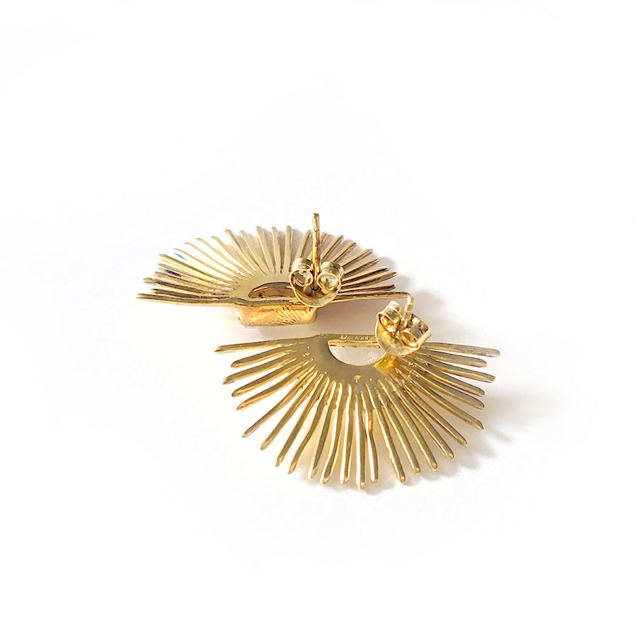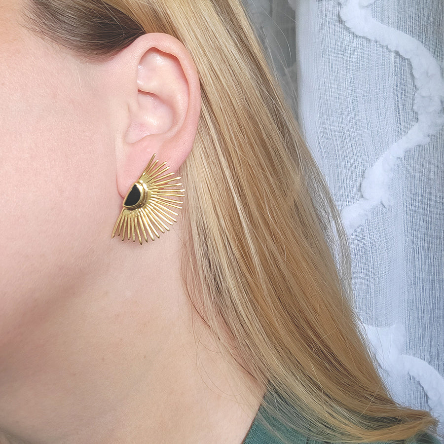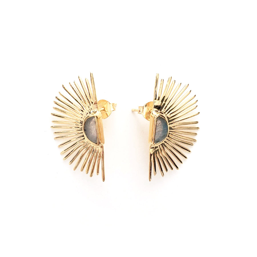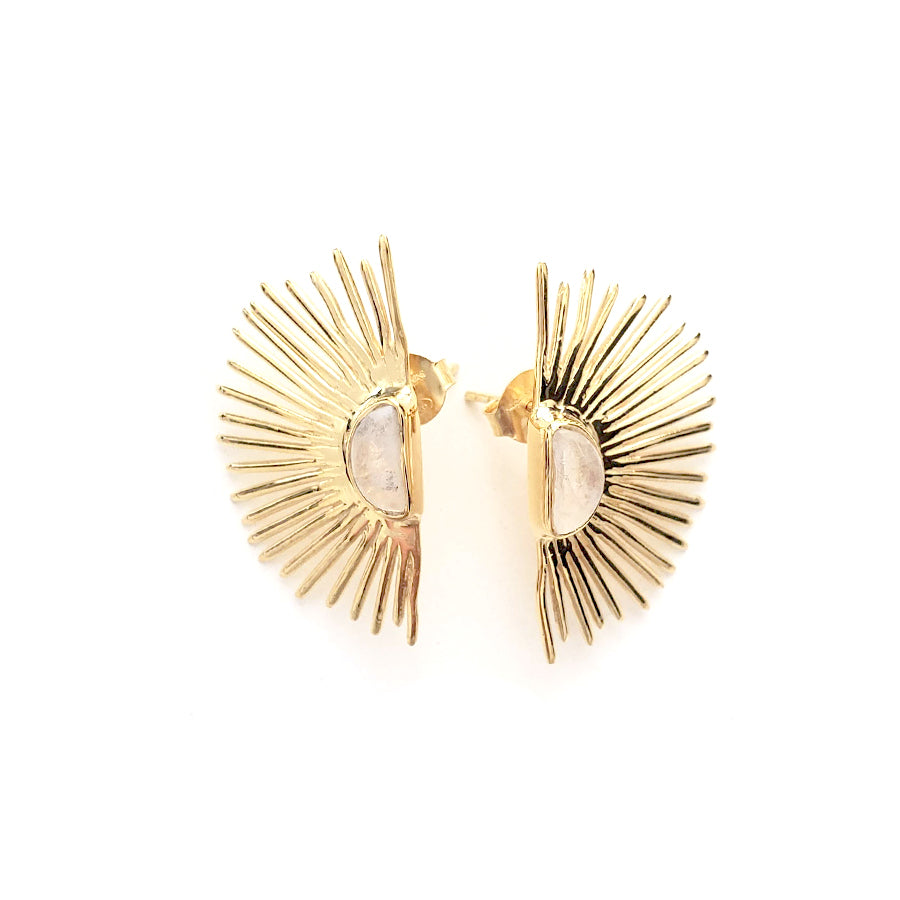 These stunning Starburst studs feature a gorgeous starburst pattern, accented with natural hand-cut half-moon gemstones.