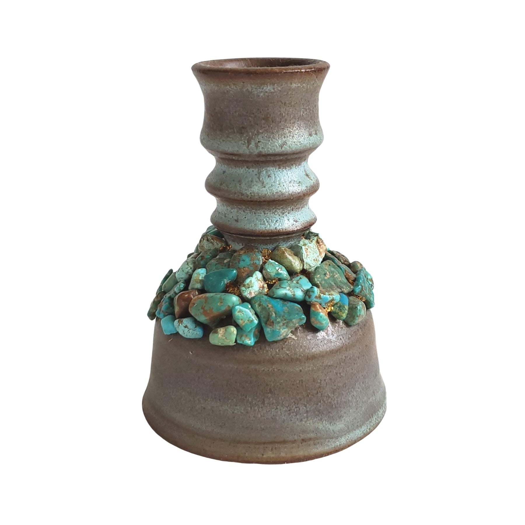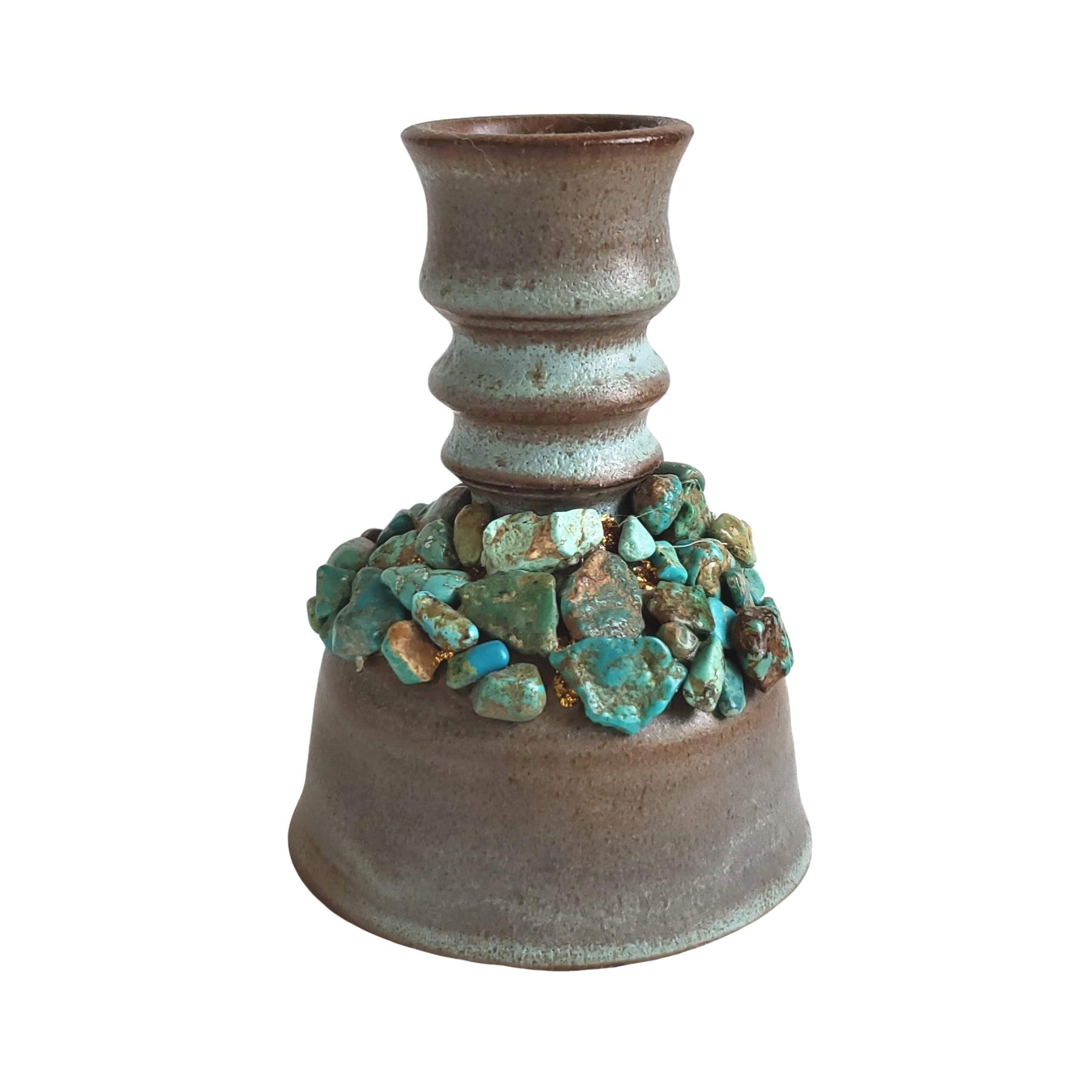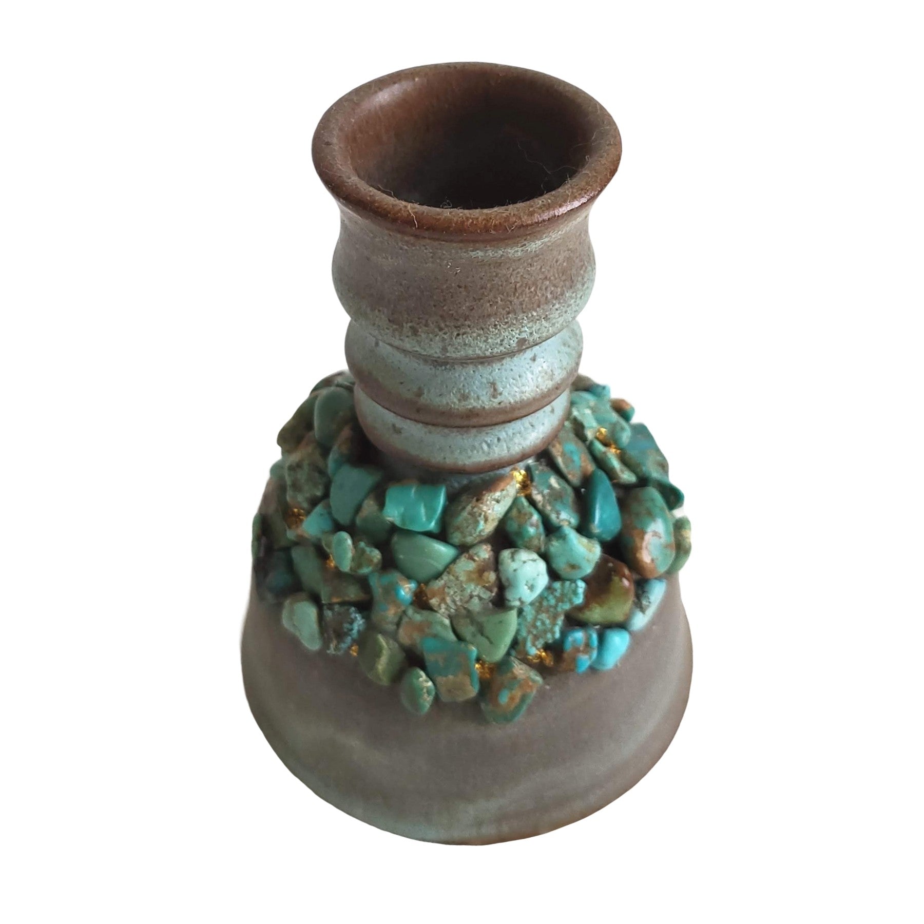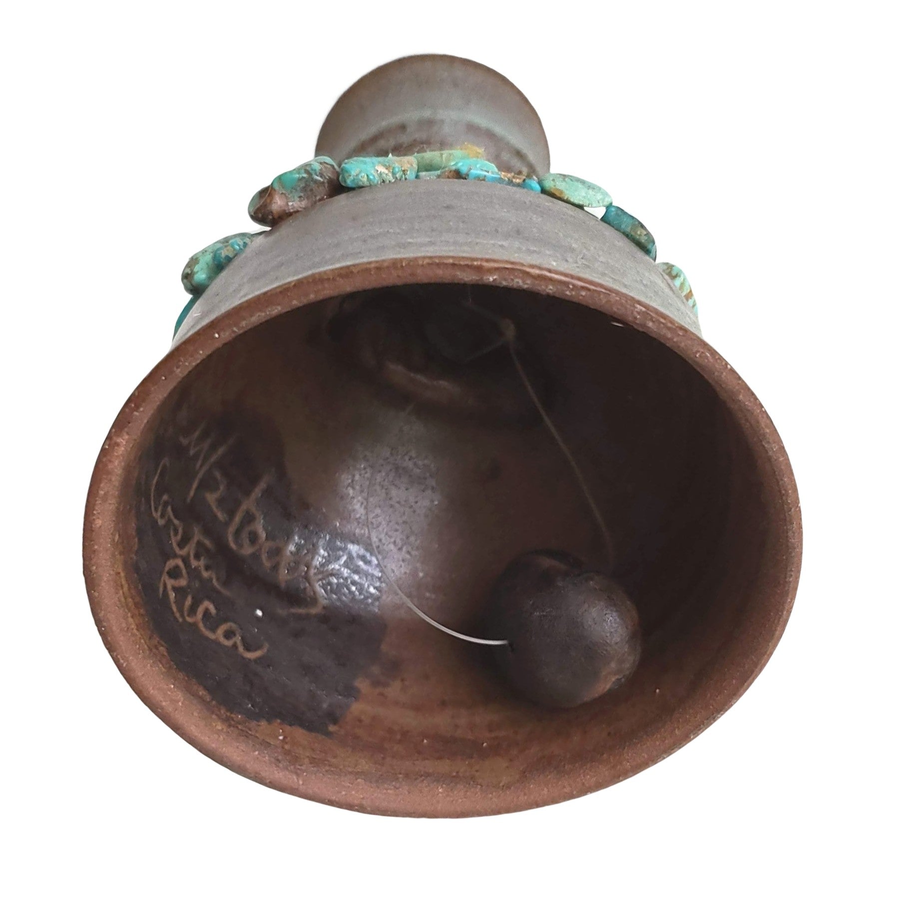 This extremely unique pottery bell was made in Costa Rica from clay, a native seed, and Turquoise Gemstones.